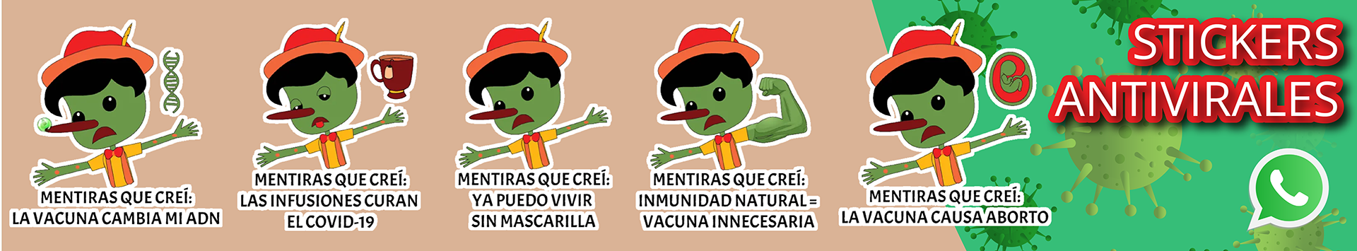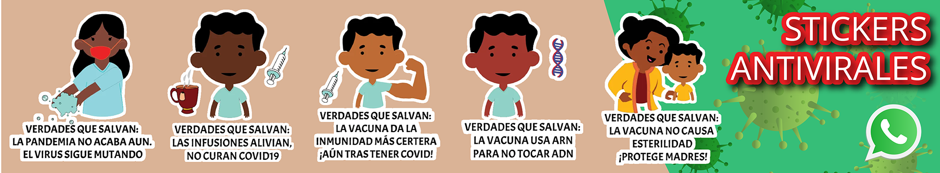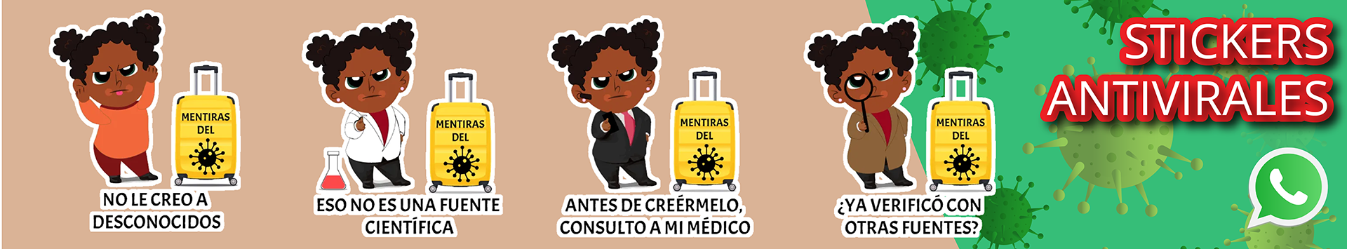 Con nuestra colección de stickers antivirales, te ayudamos a ser ese miembro de tu familia o comunidad que alerta sobre informaciones peligrosas y desmiente las mentirosas.